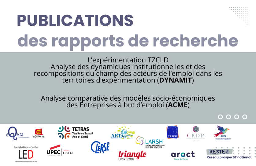 Les deux rapports, et leur synthèse, des projets de recherche menés dans le cadre d’appels à projet du Conseil Scientifique Territoire Zéro Chômeur de Longue Durée (TZCLD) par les membres du réseau RESTEZ sont disponibles sur les sites de la chaire EQAM et de la DARES :